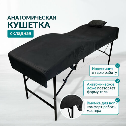 Складная анатомическая кушетка, для нарашивания ресниц, для перманентного макияжа, для косметолога, Черный, Велюр