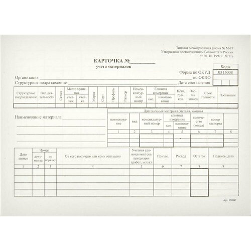 Учета Attache форма М-17 ОКУД 0315008 офсет А5 61855