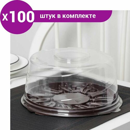 Тортница одноразровая с крышкой, 22,5x10,7 см, дно 18x9,1 см, цвет прозрачный, коричневый (100 шт)