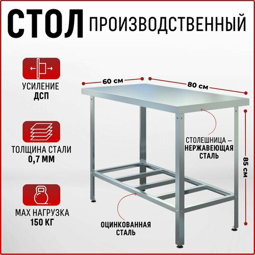 Стол из нержавеющей стали 800х600х850 без борта производственный для общепита