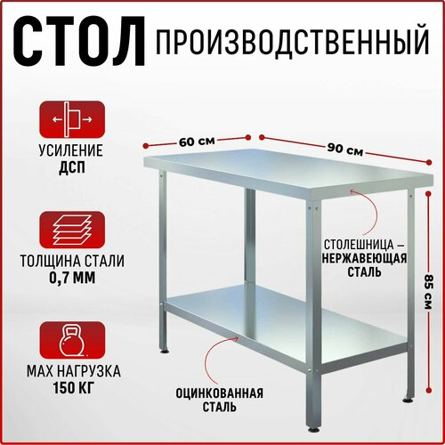 Стол из нержавеющей стали 900х600х850 без борта производственный для общепита