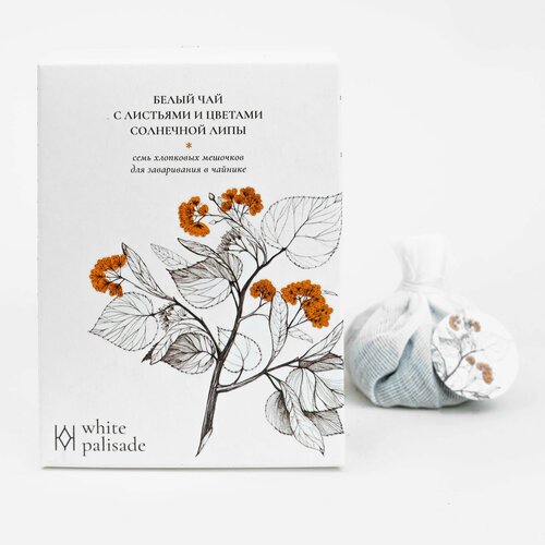 Чай White Palisade, листовой белый с листьями и цветами солнечной липы, в хлопковых мешочках, натуральный, без ароматизаторов