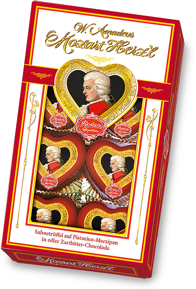 Конфеты шоколадные Reber Mozart сердечки из молочного шоколада с марципаном, 80 г Германия