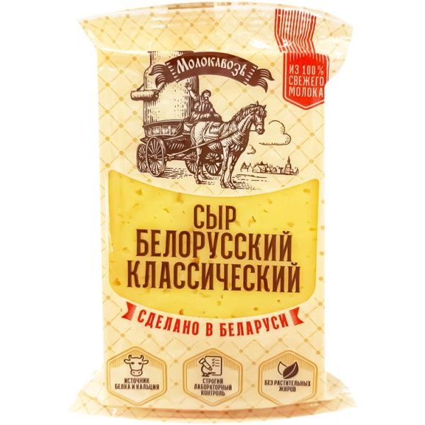 Сыр полутвердый Молокавоз Белорусский Классический 45% 160 г Без бренда