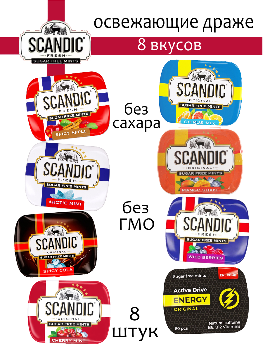 Освежающие драже Scandic, ассорти 8 вкусов, 8 шт х 14 г