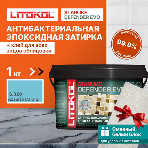 Затирка LITOKOL Starlike Defender Evo S.320 Azzurro Caraibi,1 кг + 1 белый сменный блок