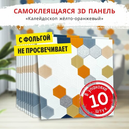 Самоклеющиеся мягкие стеновые панели 3d для потолка "Калейдоскоп желто-оранжевый" 10 шт. фартук кухонный на стену 700*700*5 мм самоклеящиеся обои для кухни моющиеся влагостойкие 3д ПВХ