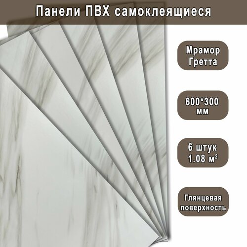 Панель самоклеящаяся ПВХ Мрамор Нова Грета гранд 300х600 мм. (6 штук)