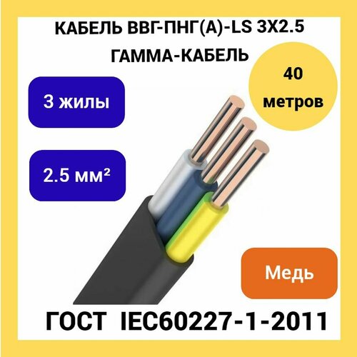 Плоский силовой кабель "Гамма кабель" ВВг-Пнг (А) LS 3x2,5мм, (40 метров)