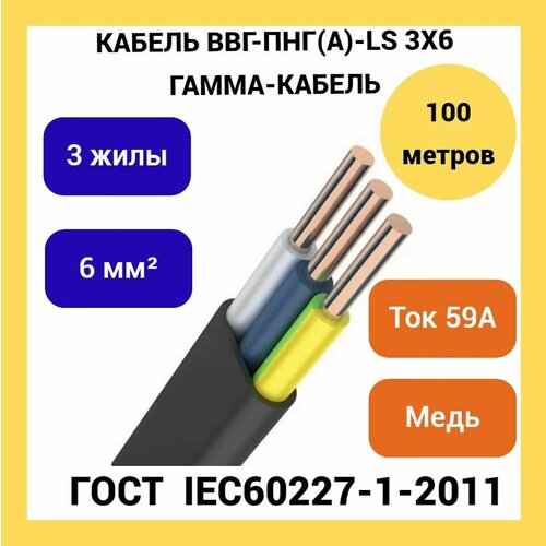 Плоский силовой кабель "Гамма кабель" ВВг-Пнг (А) LS 3x6мм, (100 метров)
