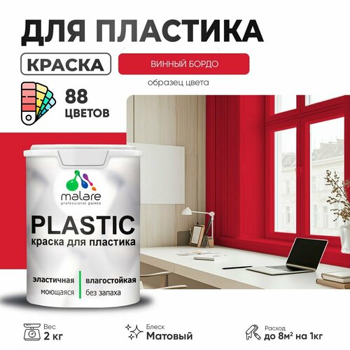 Краска акриловая (АК) Malare PlastiC моющаяся матовая винный бордо 2 кг