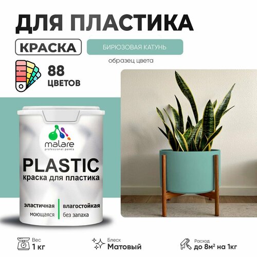 Краска акриловая (АК) Malare PlastiC моющаяся матовая бирюзовая катунь 1 кг