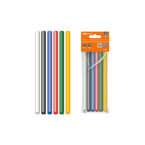 Клеевые стержни универсальные цветные, 11 мм x 100 мм, набор 6 шт, "Алмаз" TDM SQ1024-0518