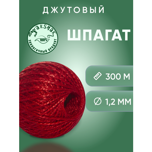 Шпагат джутовый для вязания 1,25 мм 300 гр. красный