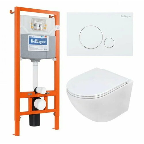 Комплект: Инсталляция для подвесного унитаза BELBAGNO BB001-120 белая кнопка+Унитаз подвесной безободковый Lengitown Мilan с сиденьем TL-46