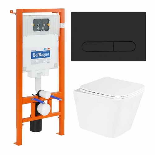 Комплект: Инсталляция для подвесного унитаза BELBAGNO BB001-120 черная кнопка+Унитаз подвесной безободковыйс сиденьем BelBagno DUE
