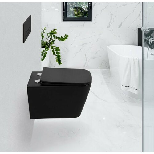 Унитаз подвесной безободковый Lemark Glazer 9612004 с крышкой микролифт (Система смыва торнадо), чёрный матовый
