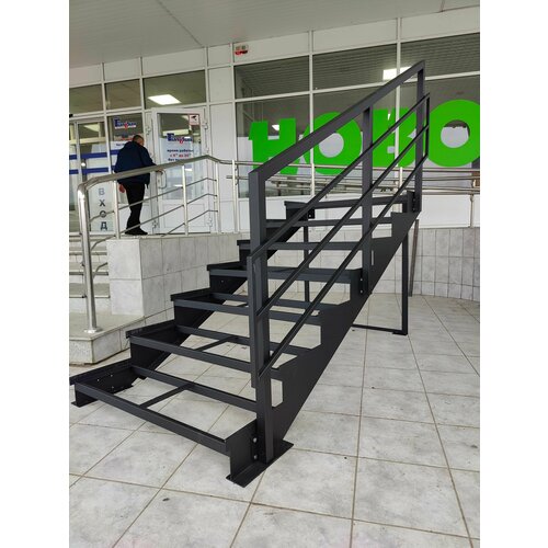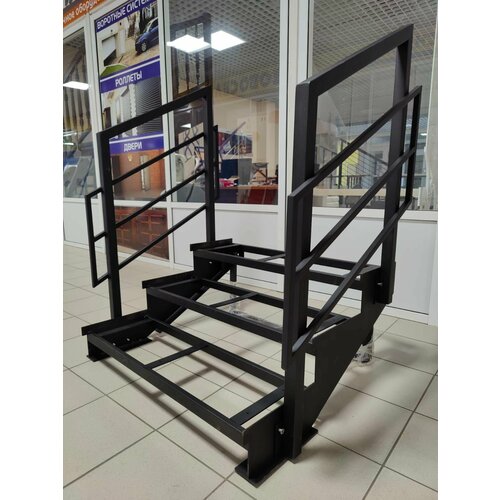 Лестница металлическая 3 ступени : функциональность и стиль. Ограждение с одной стороны.