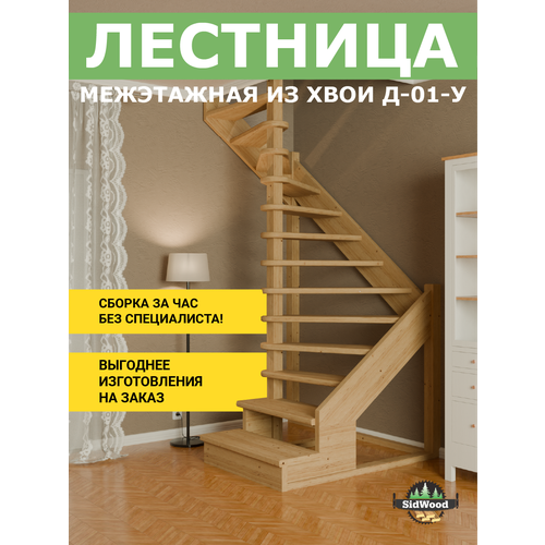 Межэтажная деревянная лестница на второй этаж Д-01-У (ЛЕС-01У)