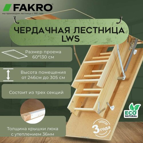 Лестница чердачная Fakro LWS деревянная 60х130х305 см 100048758176