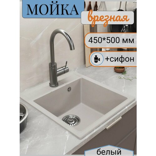 Мойка для кухни врезная прямоугольная из искусственного камня, 450*500*190мм