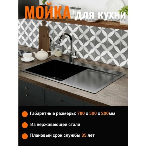 Мойка из нержавеющей стали для кухни, врезная 78х50