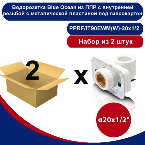 Водорозетка Blue Ocean с внутренней резьбой белая с металлической пластиной под гипсокартон - 20х1/2" /набор из 2шт