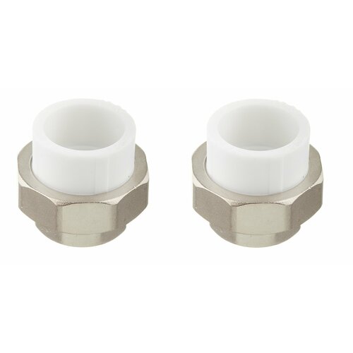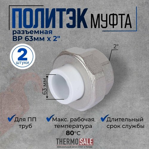 Муфта полипропиленовая разъемная 2 шт 63 х 2" комбинированная с внутренней резьбой под комбинированная сварку для ПП труб, цвет белый Политэк