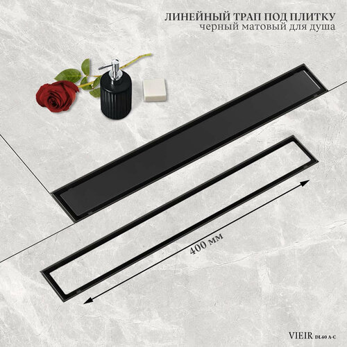 Трап для душа, матовый, под плитку, длина 400мм, c горизонтальным выходом, из нержавеющей стали, с сухим и гидрозатвором VIEIR DL40A-C