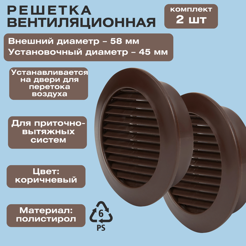 Набор из 2-х вентиляционных решёток D58 мм, цвет коричневый, для дверного полотна, для обеспечения циркуляции воздушных масс между помещениями