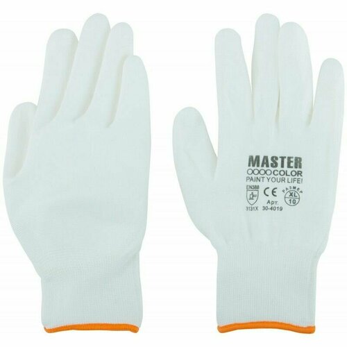 Перчатки белые, полиэстер с обливкой из полиуретана ( водоотталкивающие), р-р XL/10 MASTER COLOR 30-4019