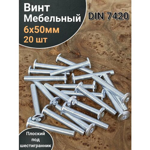 Винт мебельный 6х50 плоский под шестигранник DIN7420,20 шт