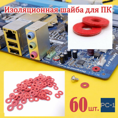 60шт. Red Изоляционная шайба плоская под М3.0 Прокладка кольцо красное для изоляции винтов крепления материнской платы ПК.