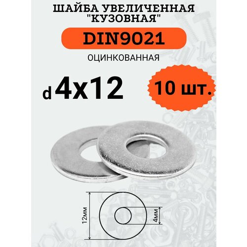 Шайба кузовная (увеличенная) DIN9021 D4х12 оцинкованная, 10шт.