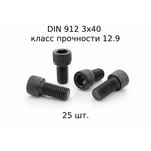 Винт DIN 912 M 3x40 с внутренним шестигранником, класс прочности 12.9, оксидированные, черные 25 шт.