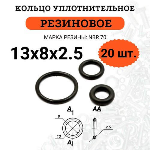 Кольцо из резины NBR 70 (нитрил бутадиен каучук, твёрдость 70 Шор А) 13х8х2.5, 20 штук