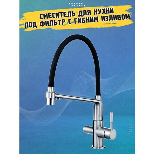 Смеситель для кухни с подключением к фильтру / Кухонный смеситель с гибким изливом сатин