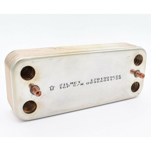 Теплообменник ГВС 16 пластин, 166 мм, производитель ZILMET, для котлов BAXI, Fondital Minorca, Demrad, Protherm Рысь арт. 0020119606, 711612800