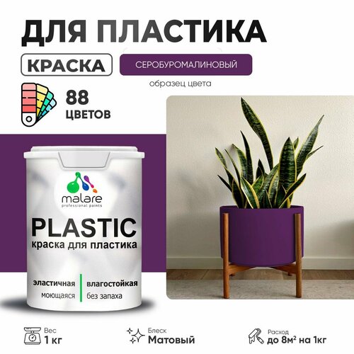 Краска акриловая (АК) Malare PlastiC моющаяся матовая серобуромалиновый 1 кг