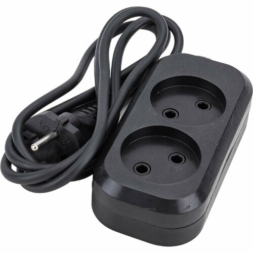 Сетевой удлинитель МПП удлинитель У-2-3, 1300 Вт, 6А, 2гнезда, 3 м, без заземления, черный, ПВС, 2x0,75 999000000003402