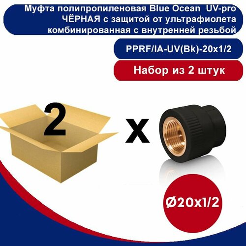Муфта полипропиленовая Blue Ocean UV-pro чёрная с защитой от ультрафиолета комбинированная с внутренней резьбой - 20x1/2" (2шт)