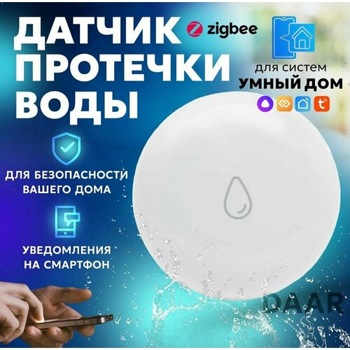 Датчик протечки воды Zigbee беспроводной для умного привода и розетки для Яндекс Алисы в умный дом