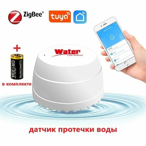 Умный , датчик протечки воды . Zigbee . Беспроводной.+Батарейка
