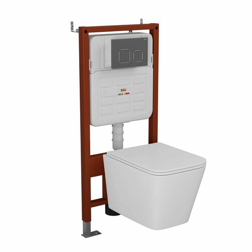 Комплект BAU 6 в 1: усиленная инсталляция BAU IDEAL, унитаз подвесной безободковый смыв торнадоBau Stil Hurricane-5, сиденье быстросъемное микролифт, клавиша BAU, темно-серый металлик/хром