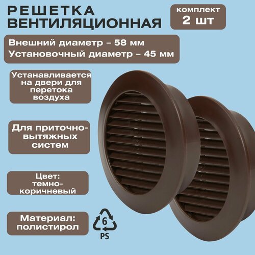 Решетка вентиляционная, D58 мм, 2 шт, полистирол, цвет коричневый. Для обеспечения циркуляции свежего воздуха в помещении