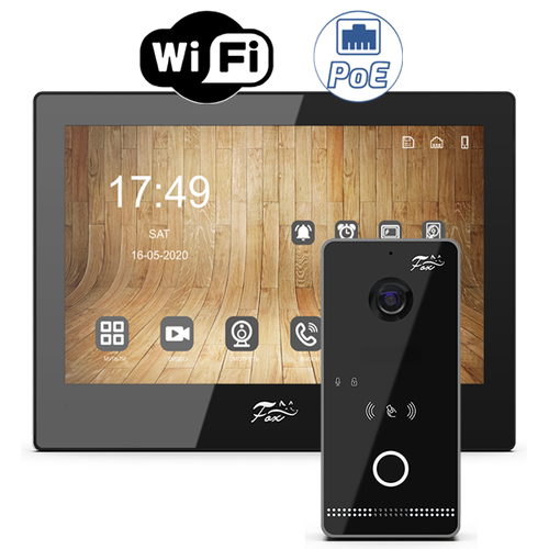 Комплект IP-видеодомофона Fox FX-IVD800WPE-KIT WiFi/PoE (черный монитор и черная панель)