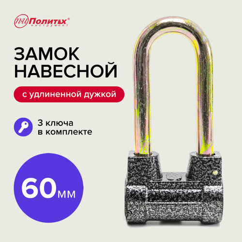 Замок навесной с закаленной удлиненной дужкой 60 мм Политех Инструмент