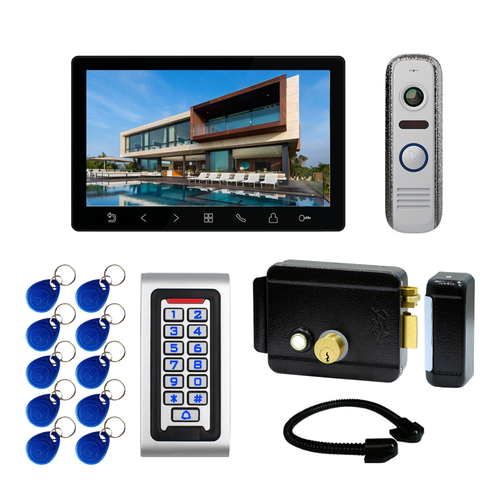 Комплект 7" видеодомофона с замком и кодовой панелью v2 (черный)