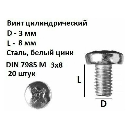 Винт с полукруглой головкой DIN 7985 12x20 25 шт.