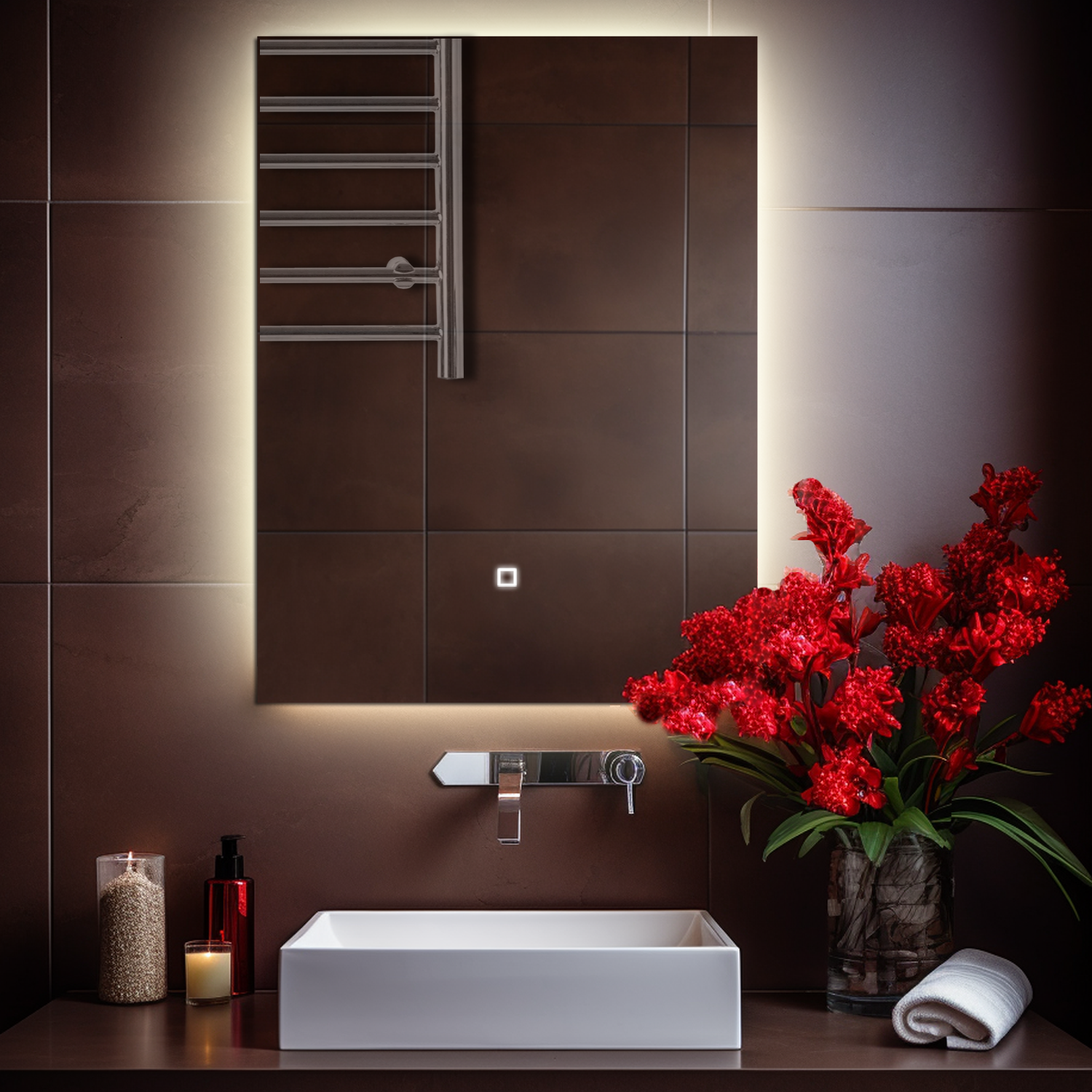 Зеркало Quattro 80*60 с нейтральной LED-подсветкой вертикальное Квартал с нейтральной подсветкой 4000К